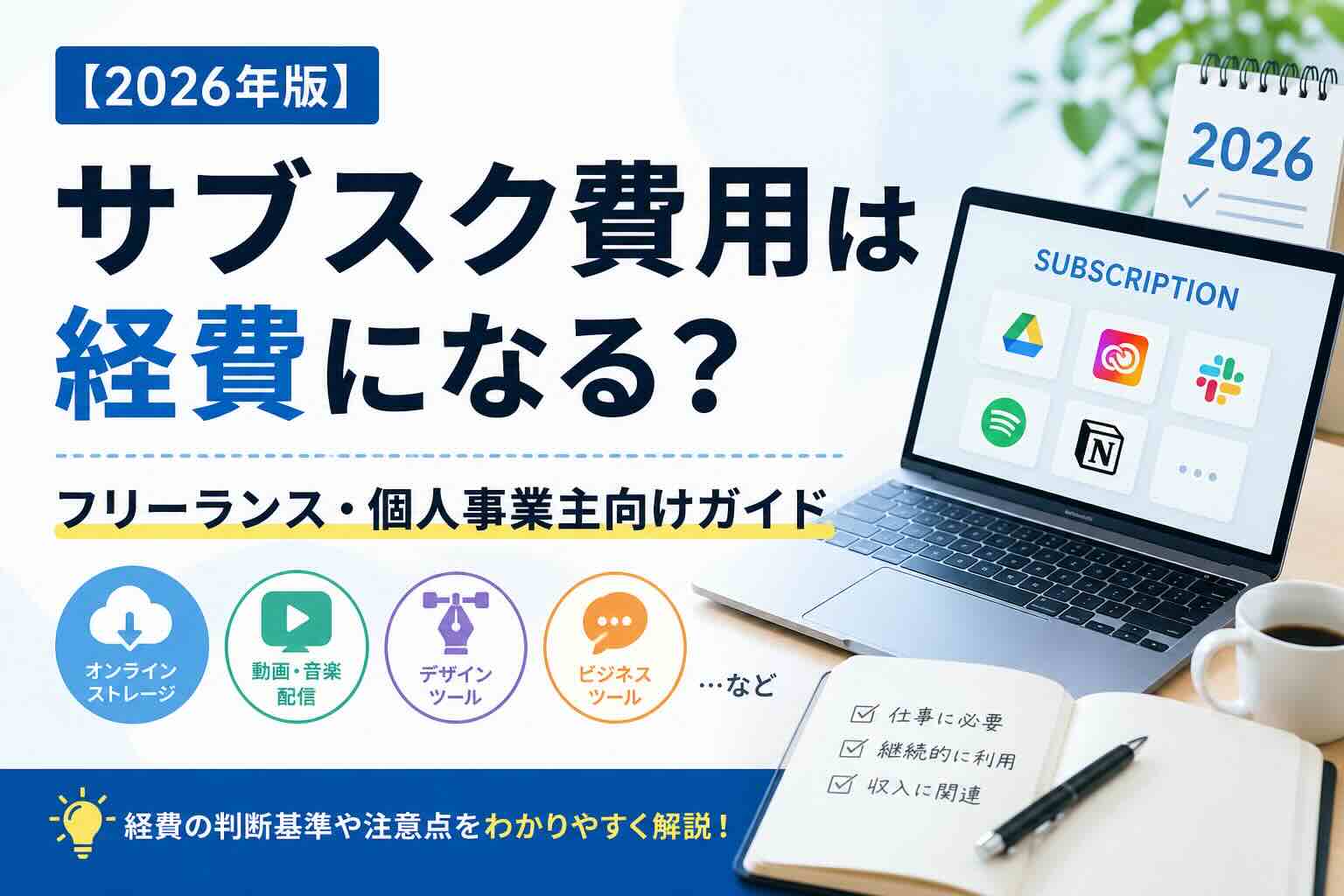 【2026年版】サブスク費用は経費になる?フリーランス・個人事業主向けガイド